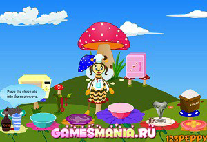 Пчелки хорошо разбираются в сладком. В этот раз пчелка научит готовить Вас шоколадный десерт. Выполняйте все действия, что показываются в облачках. Для этого нажимайте на предметы, а пчелка поможет закончить действие. Попробуйте повторить этот рецепт дома и приготовить шоколадный десерт.