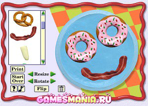 Проявляйте фантазию: создавайте оригинальные натюрморты из продуктов питания (огурцов, помидоров, грибов, рыбы, брокколи и т.д.). Непосредственно в тарелке блюда можно крутить в разные стороны (Rotate) или увеличивать в размерах (Resize). Вы можете экспериментировать с самыми неожиданными сочетаниями. Соедините клубнику с огурцами и рыбой или яичницу с пряником.